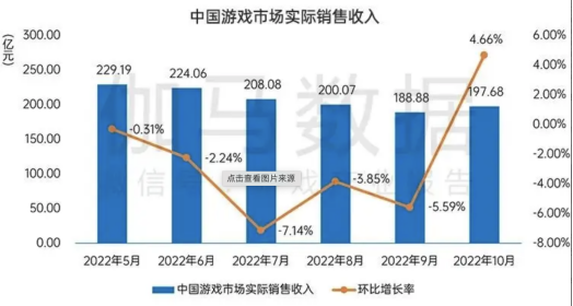 11月23日,伽马数据发布了《2022年10月游戏工业陈述》。数据显现,10月中国游戏商场实践销售收入197.68亿元,月度数据近6个月来初次呈现环比增加。其间,中国移动游戏商场实践销售收入135.55亿元,该数据相同近6个月来首度环比由负转正。尽管游戏职业政策面边沿改进非常显着,但疫情防控优化后的游戏时长下降还没到来。