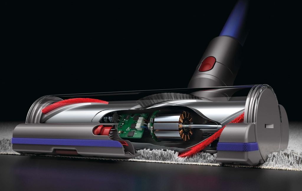 新的高扭矩地毯吸头内置三个微传感器,可智能感知刷条阻力,别离坐落高扭矩地毯吸头、戴森V11数码马达及电池,三个传感器实时互联,能够依据不同地上类型主动调整吸力。