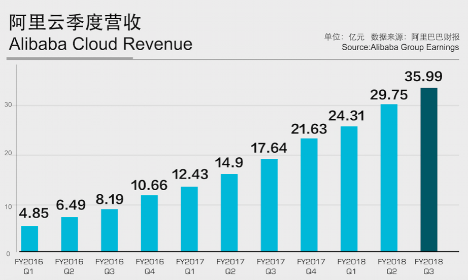 ,其中云事务开展态势仍然微弱。阿里云接连第11个季度坚持规划翻番,该季度内同比增加104%到达35.99亿元。2017年阿里云累计收入约112亿元,成为国内初次呈现百亿规划的云核算服务商,在亚洲商场上坚持抢先优势。财报显现,获益于云核算付费用户的继续增加以及多元化的收入结构,阿里云该季度营收同比增加104%至35.99亿元。曩昔的三个季度中,阿里云季度营收分别为21.63亿元、24.31亿元和29.75亿元。以此核算,上一年阿里云累计营收打破百亿大关,并继续坚持三位数的增加。